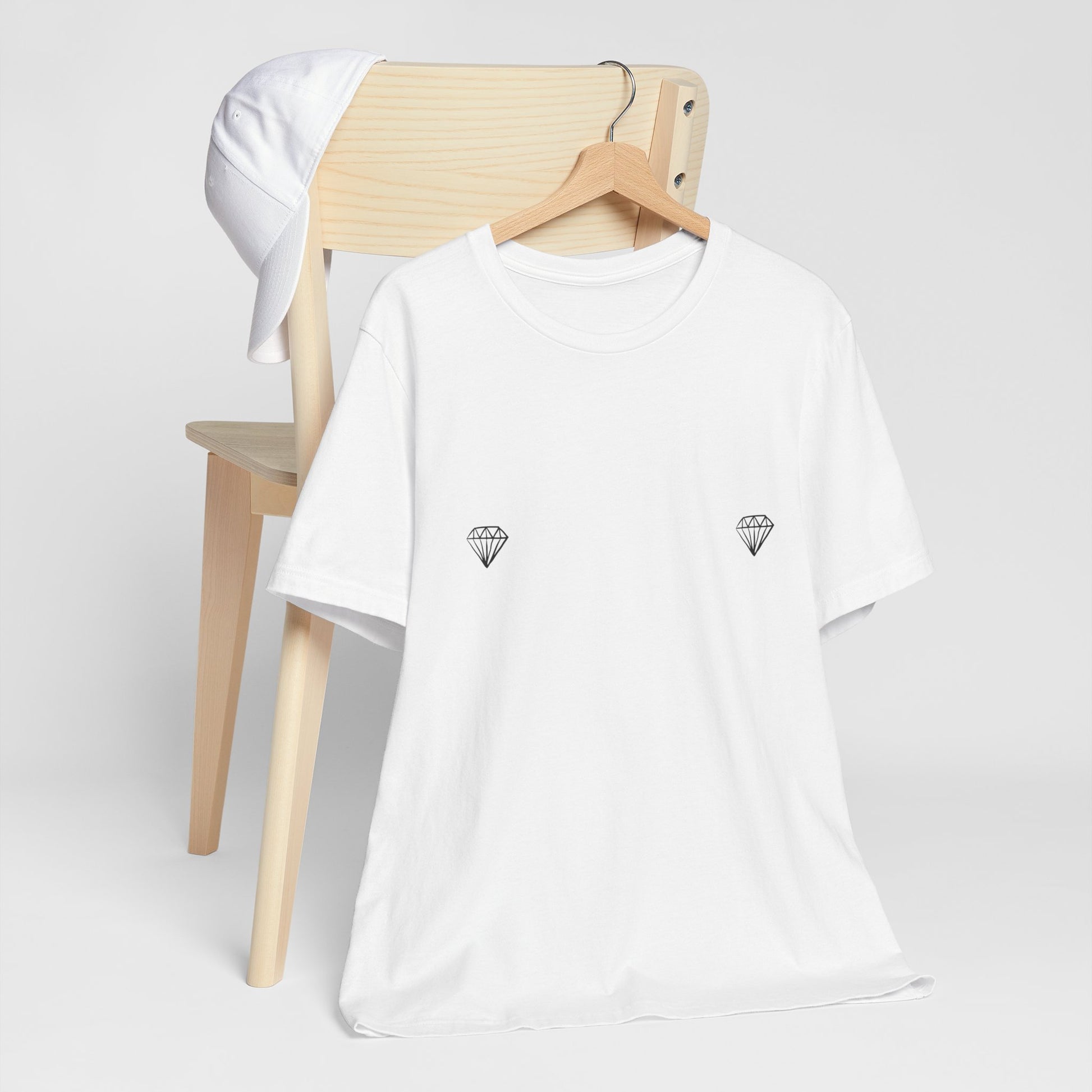 Two brilliant diamonds. Not just sparkle, statement. This tee says you’re rare, radiant, and unapologetically polished. It’s playful, a little bougie, and totally bold — just like you. Strategically placed for a cheeky, high-class flex. It’s giving sparkle, sass, and zero shame.