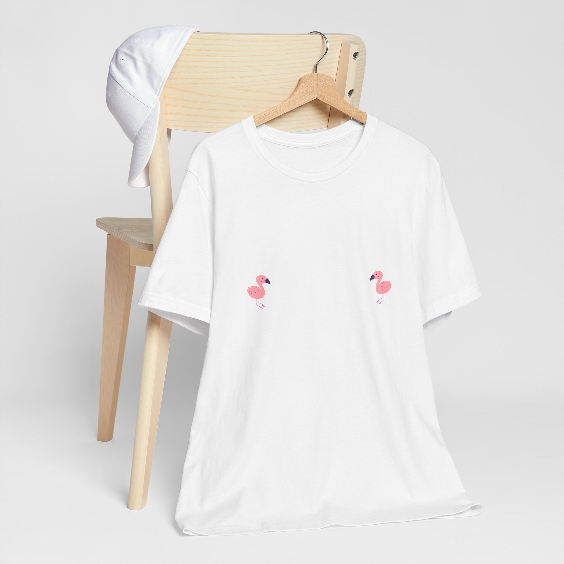 A pair of pink flamingos. Perfectly placed. Fiercely fabulous. This cheeky tee is for the bold, the fun, and the unapologetically extra. Whether you're lounging poolside, strutting down the street, or just flamingo-ing your own way through life.