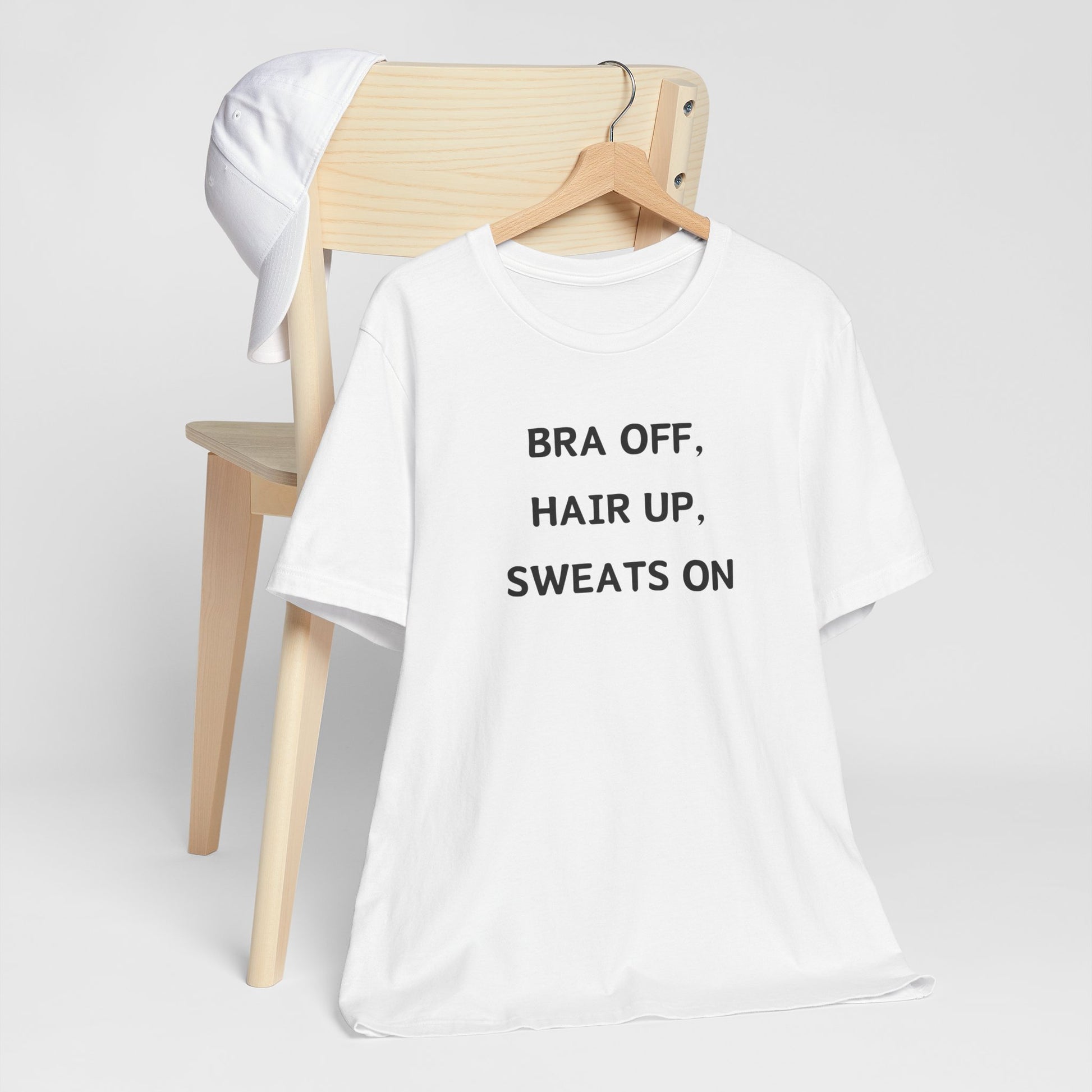 Nothing says I’m done with the day like this shirt. This “Bra off, hair up, sweats on” tee is the ultimate mood for anyone who lives for that post-work vibe. Soft, cozy, and comfy AF — this tee feels just as good as it sounds.