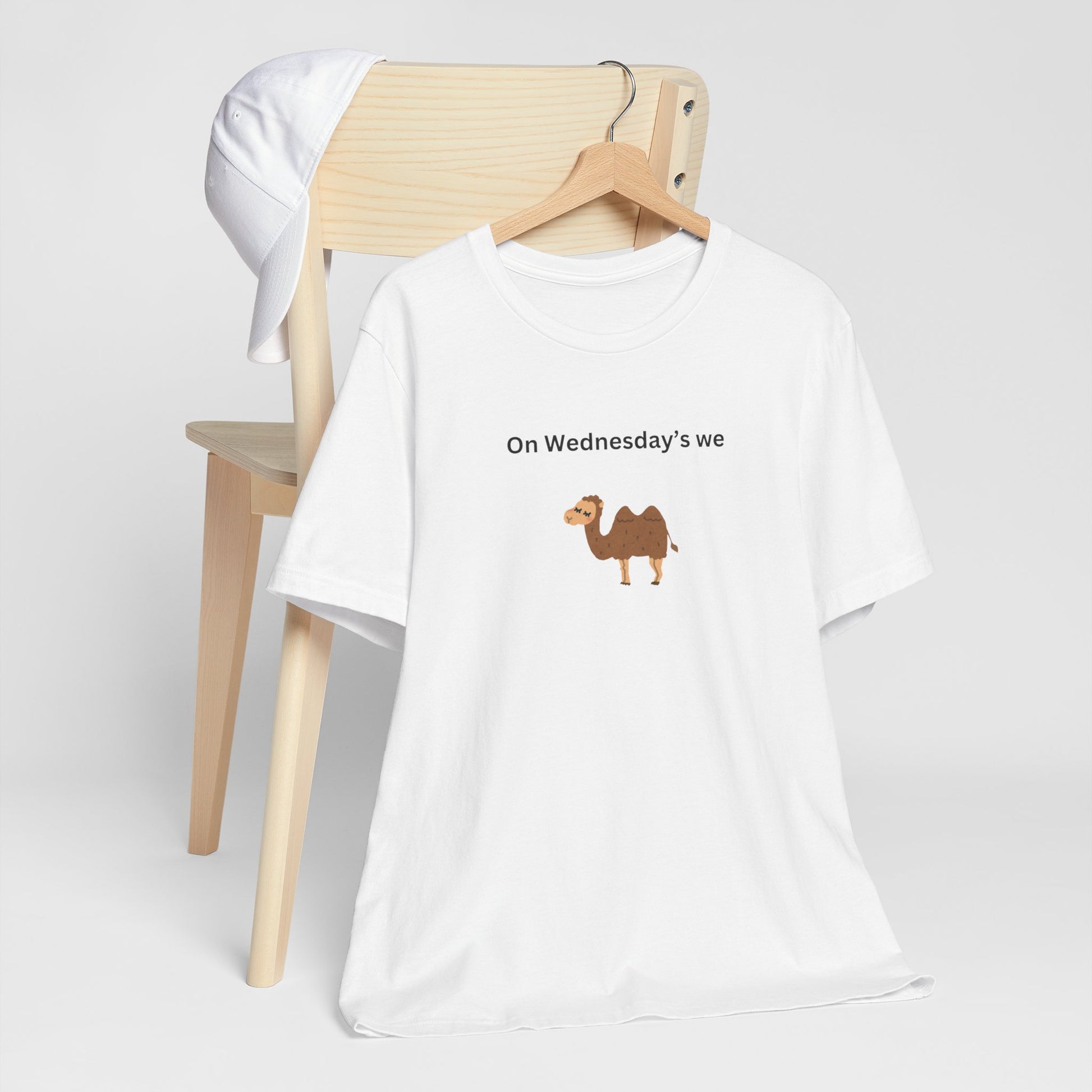 This cheeky tee features the phrase “On Wednesdays We Hump” with a graphic of a camel’s hump replacing the word “hump.” Your new favorite mid-week conversation starter.